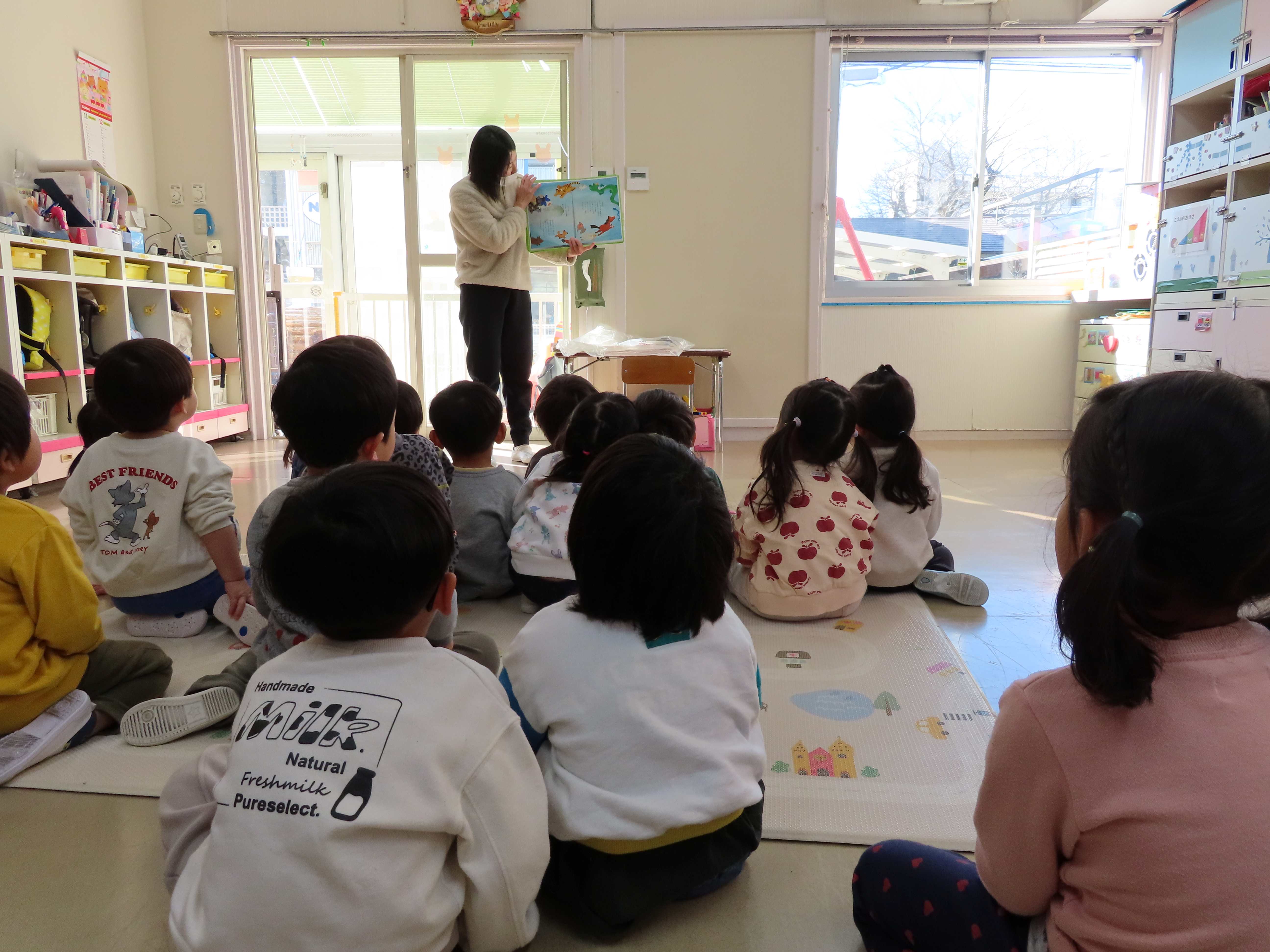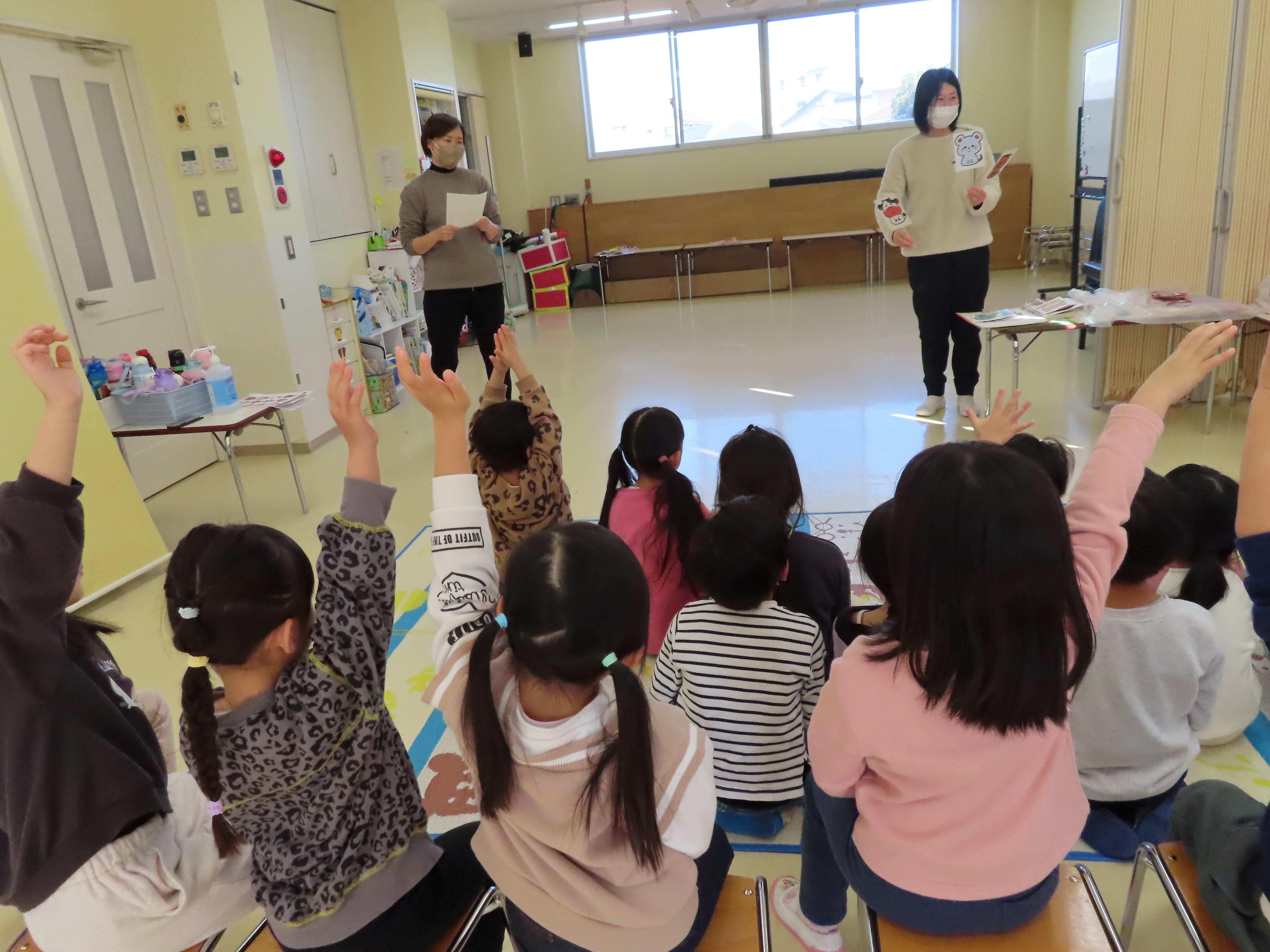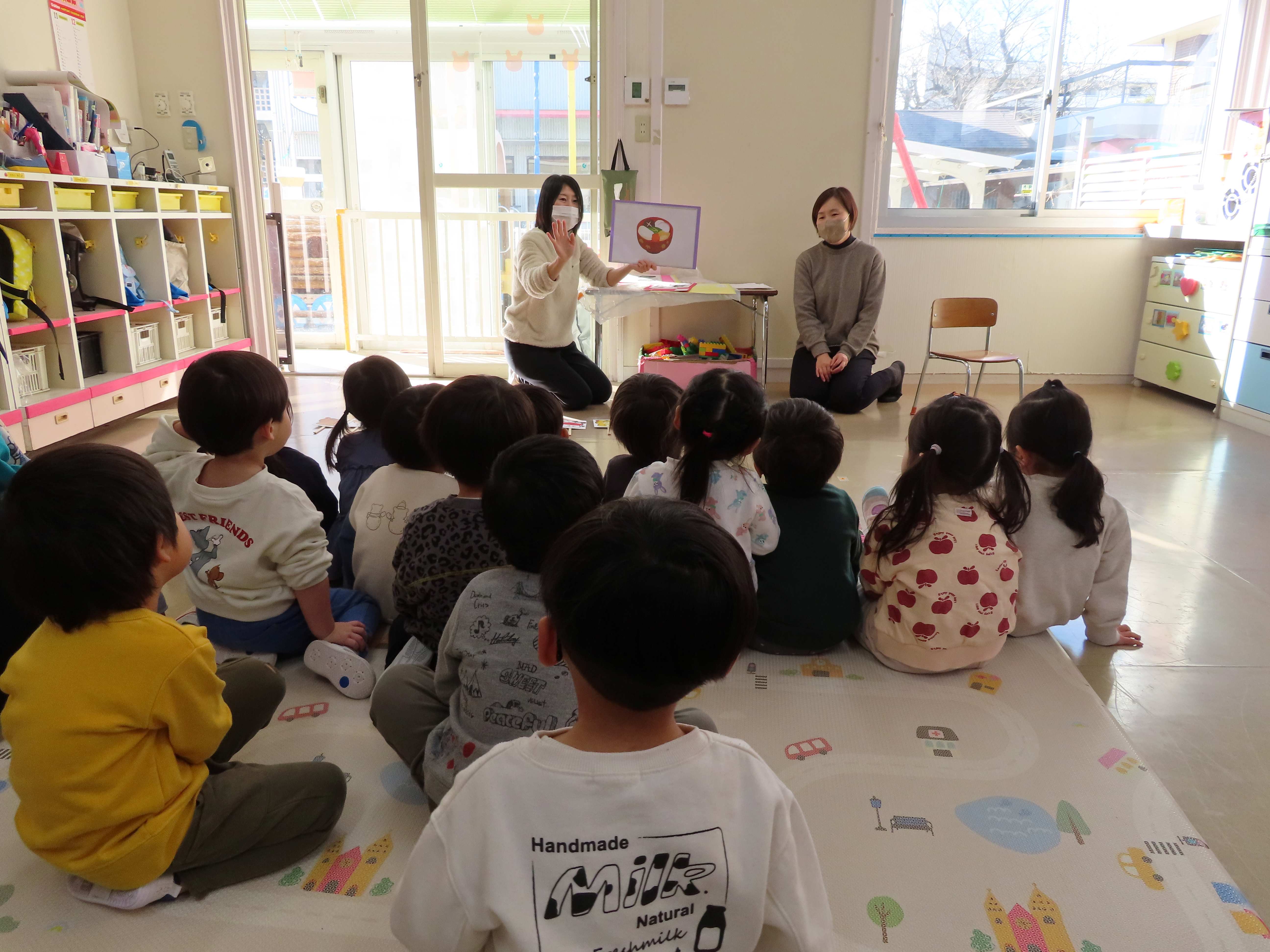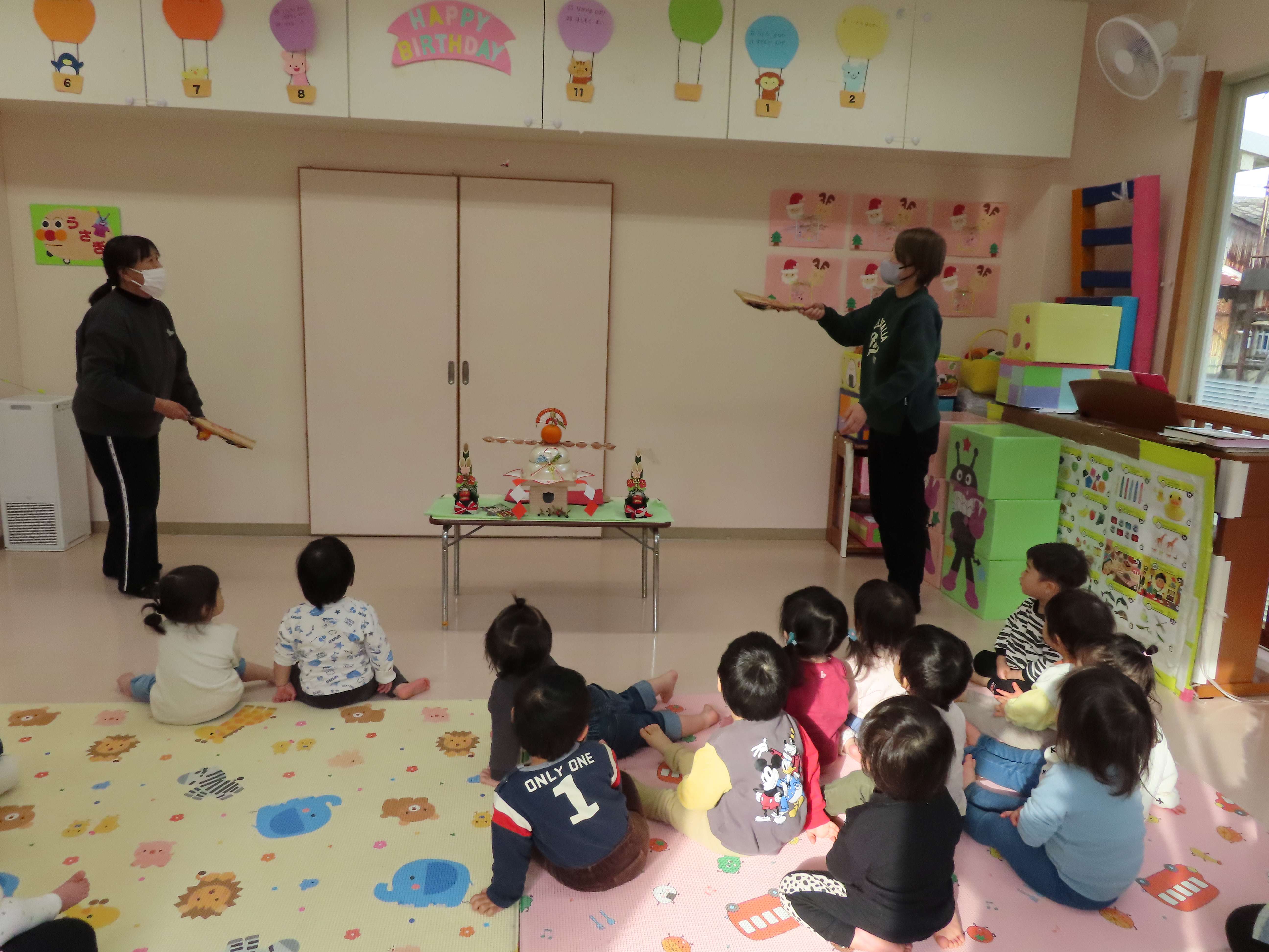 ぱんだ・ぞう組は先生たちがついたおもちをあべ川もちにして食べました。おいしかったね!