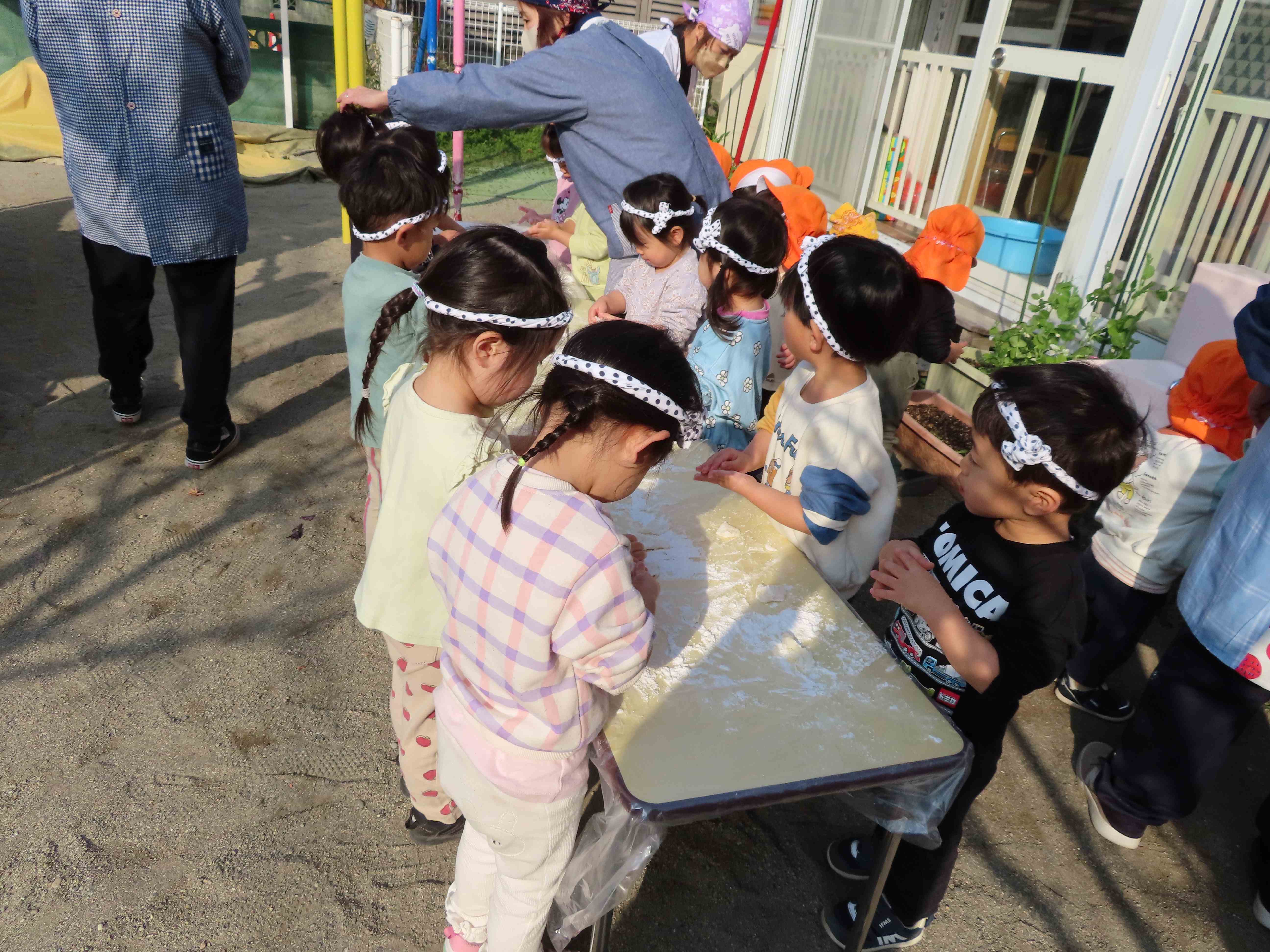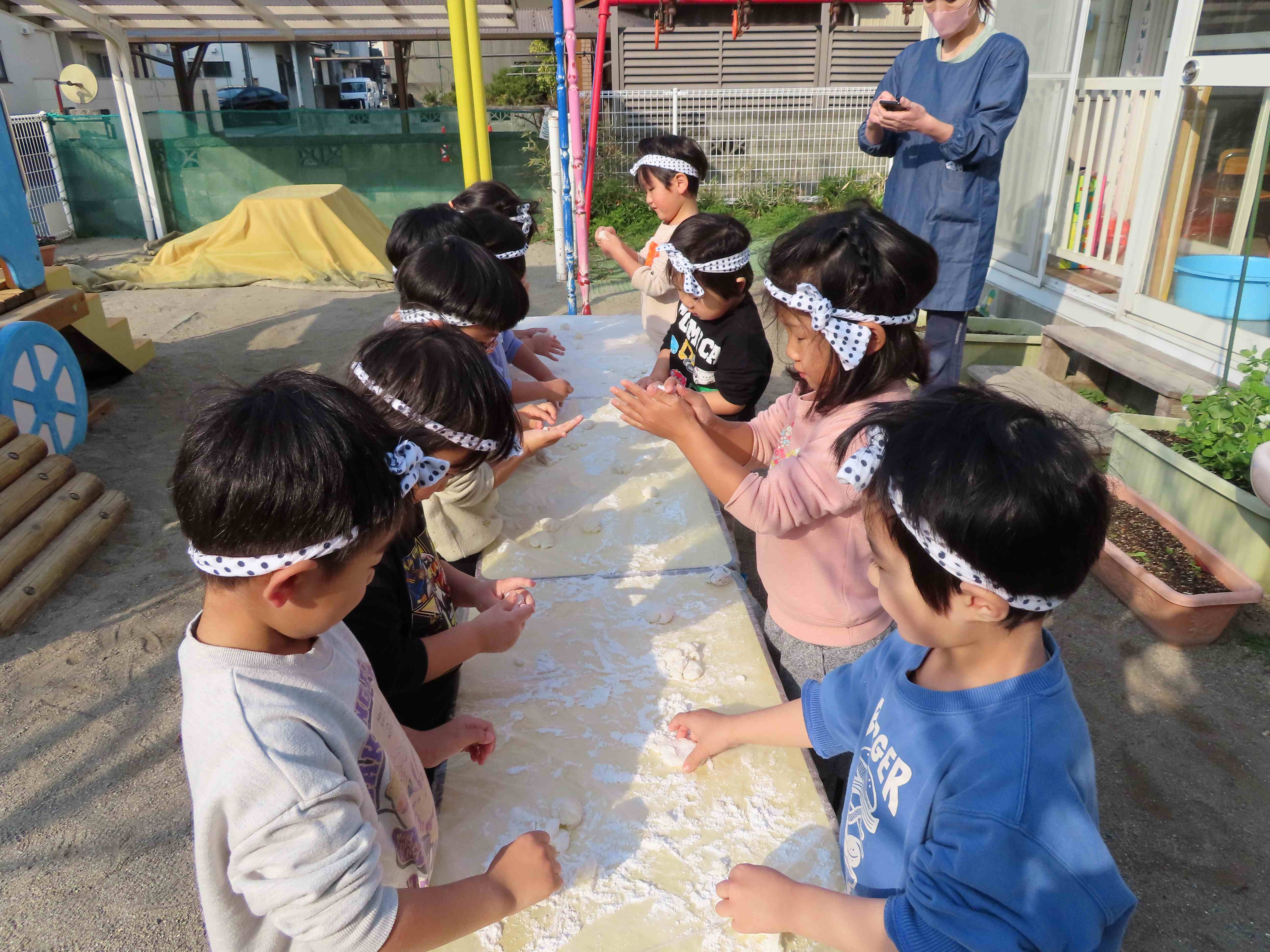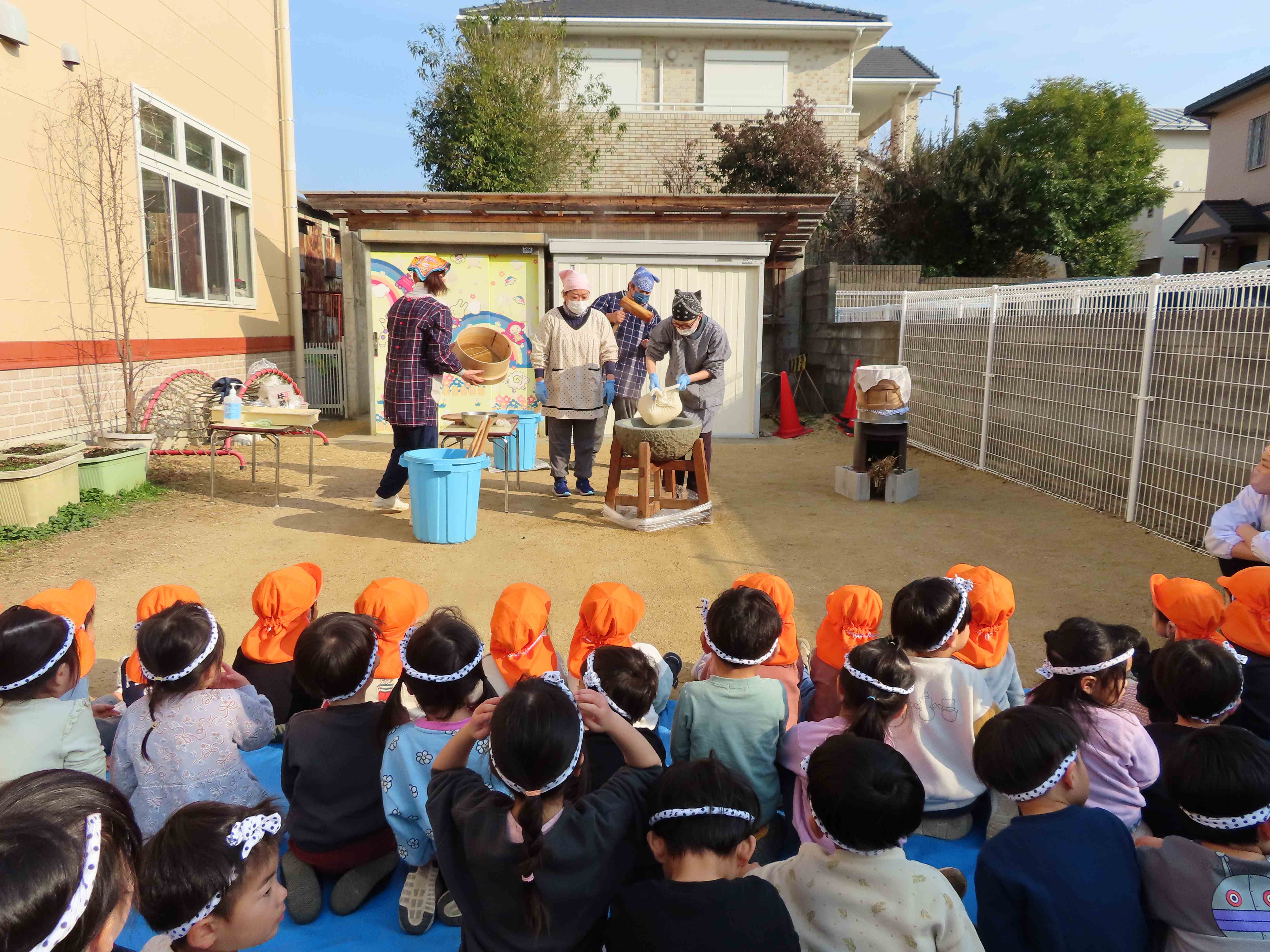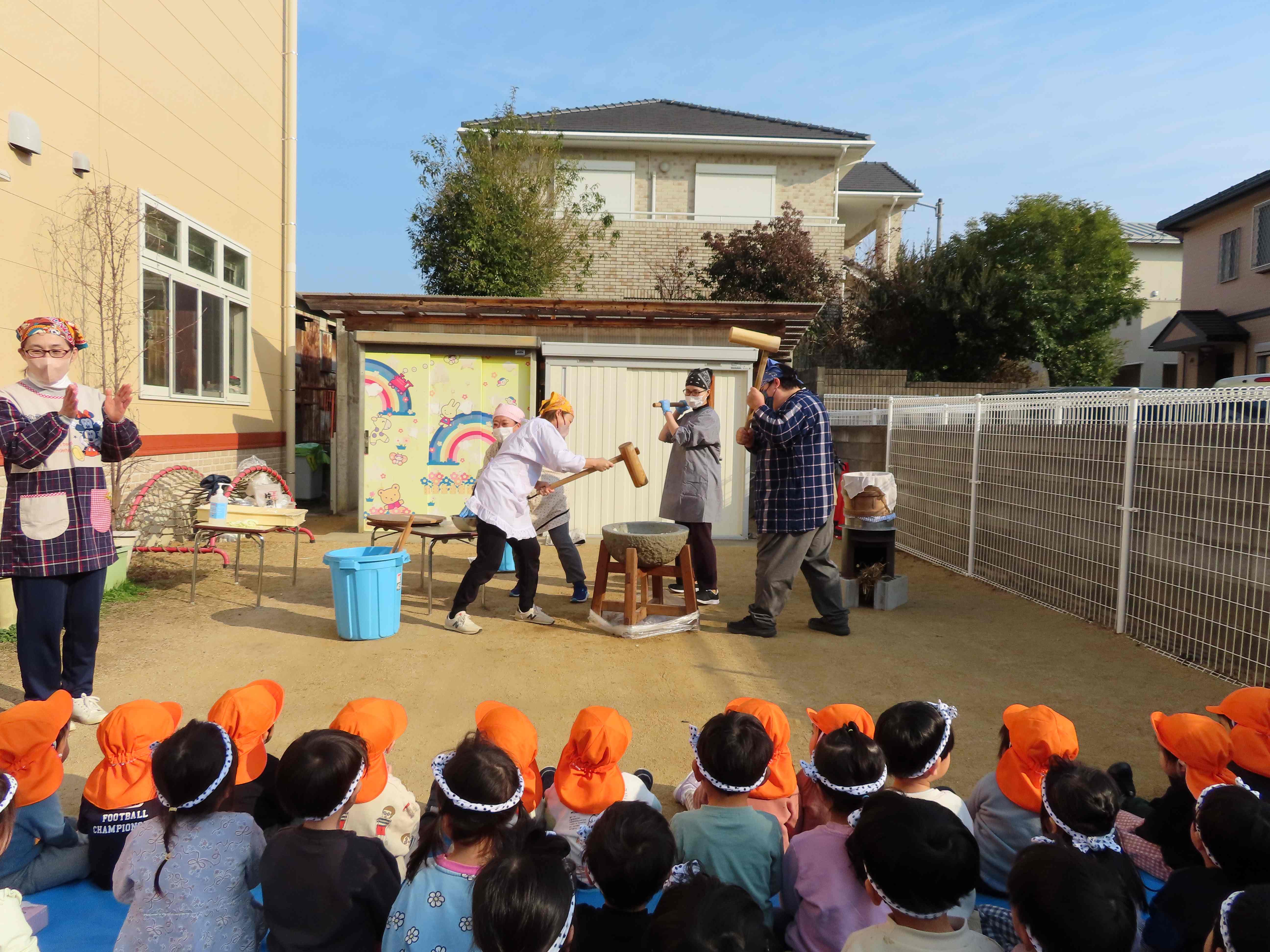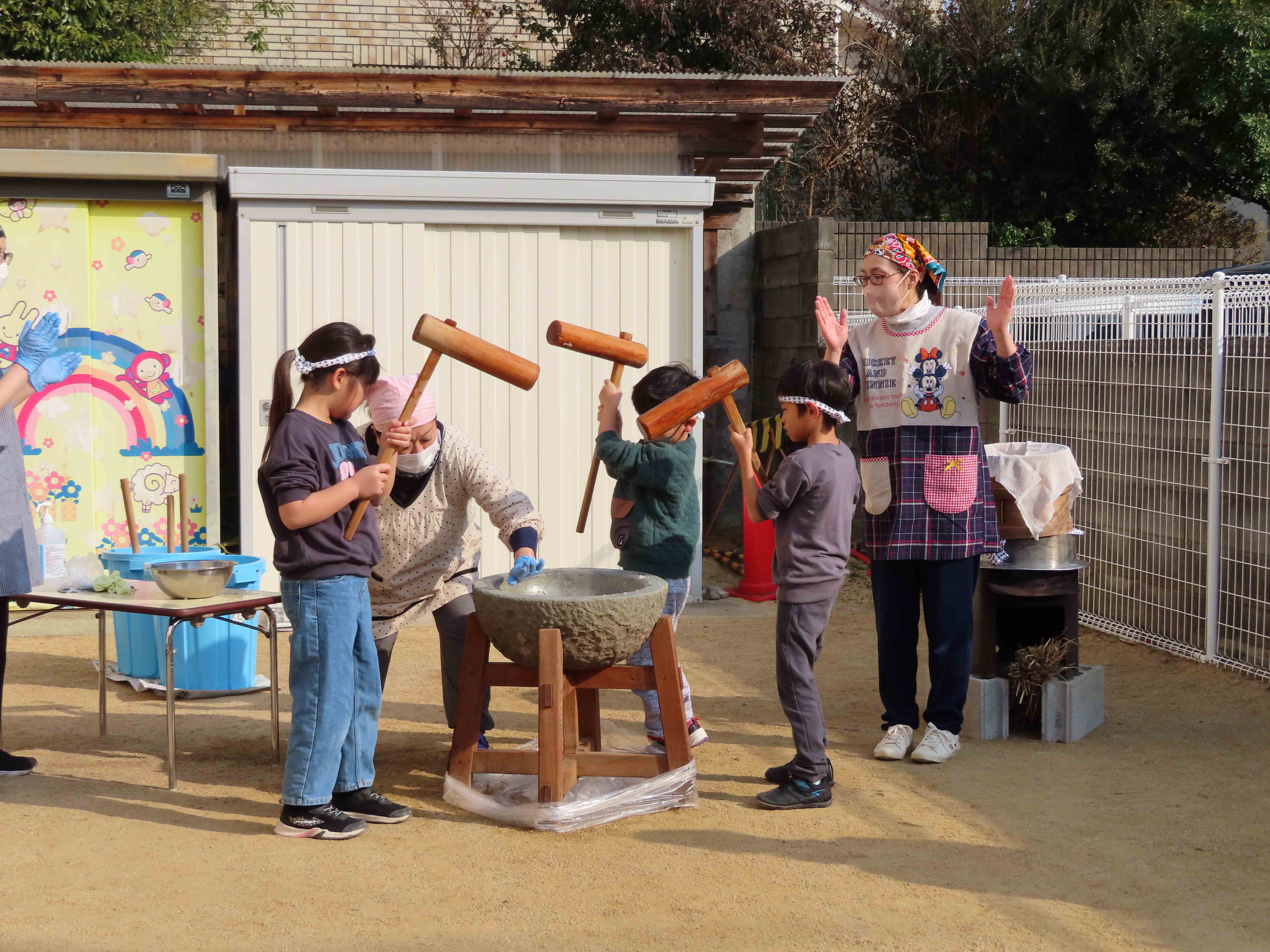 まずは先生がついて、そのあと、みんなでつきました