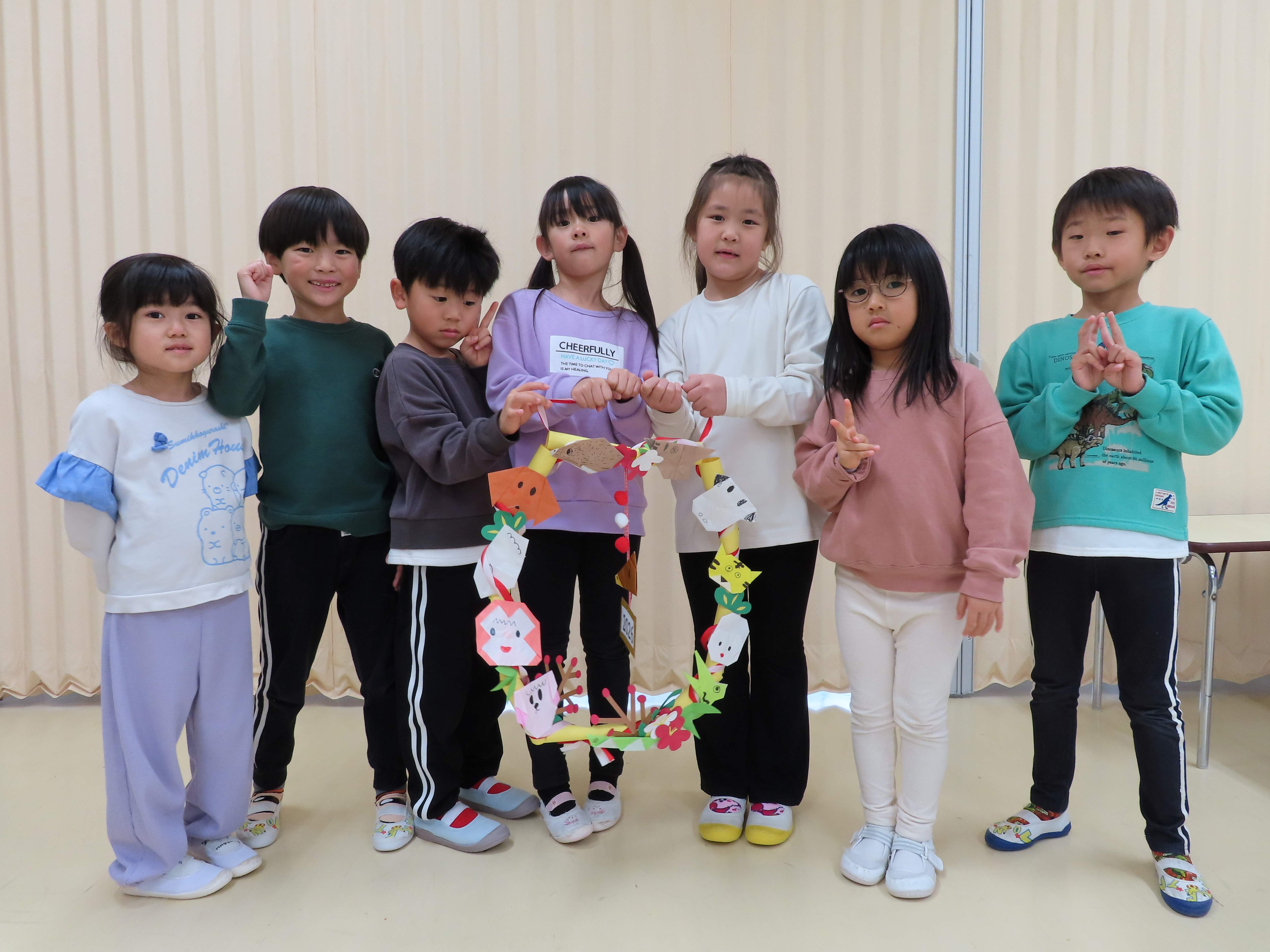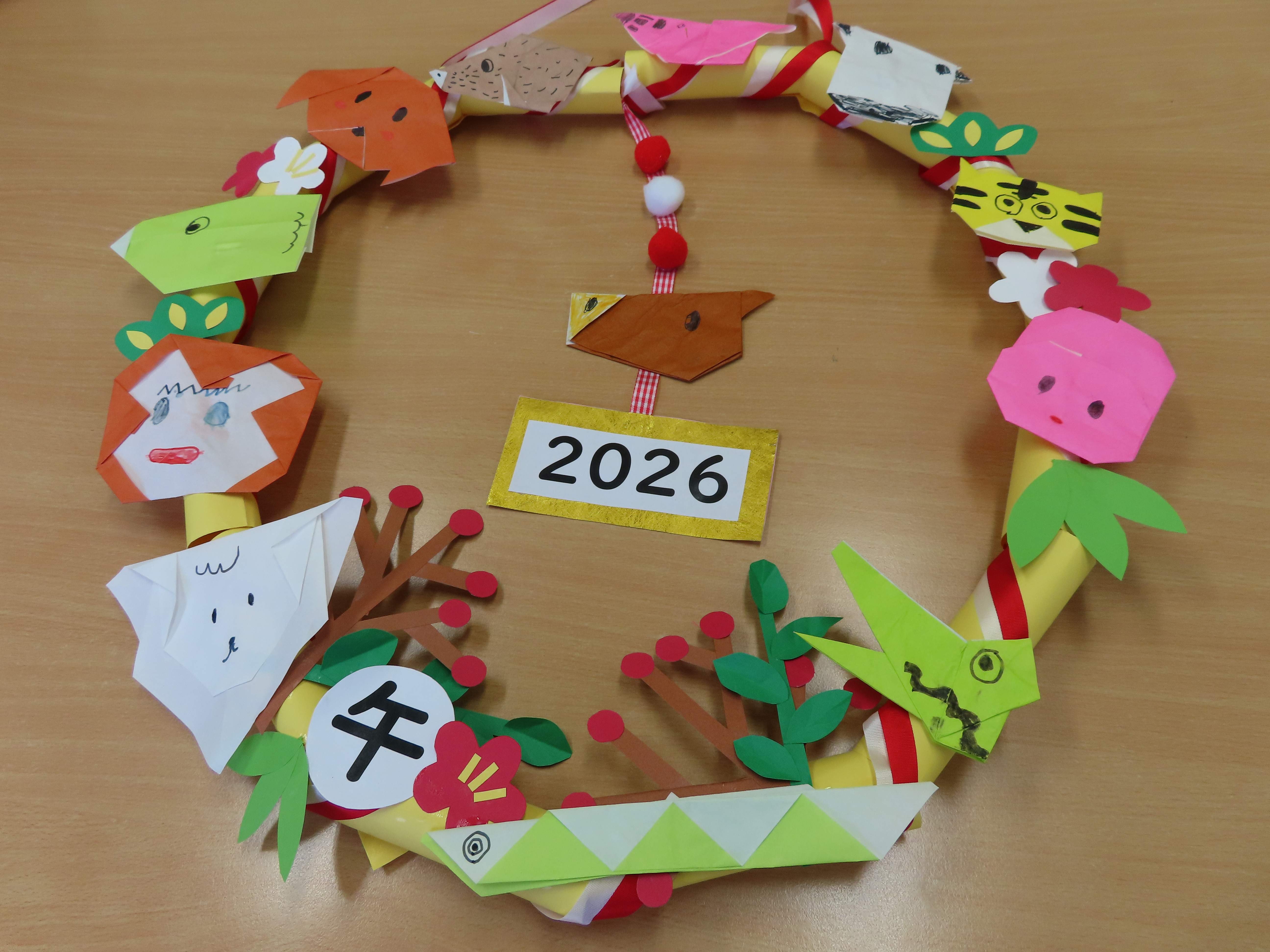 ぞう組さんが干支を折り紙で作って素敵なリースが出来ました!